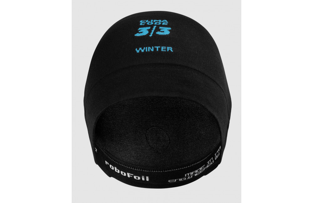 This ASSOS Winter roboFoil under-helmet is specifically designed for the still harsh conditions of winter, thanks to a dense fabric that will block icy winds and provide you with head insulation.
