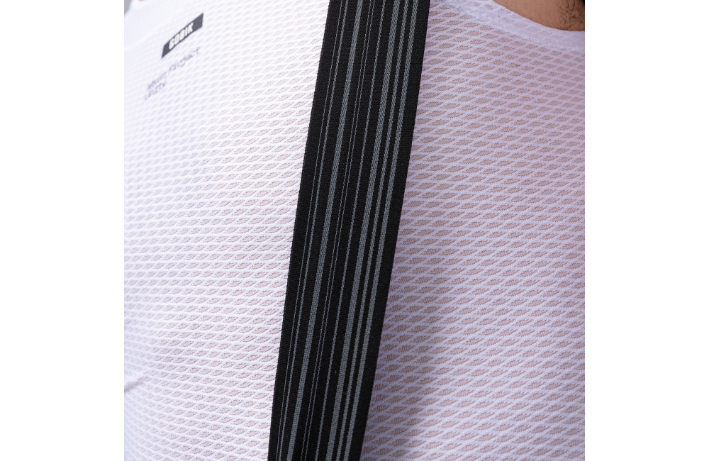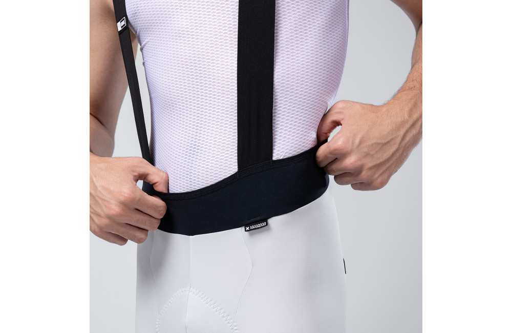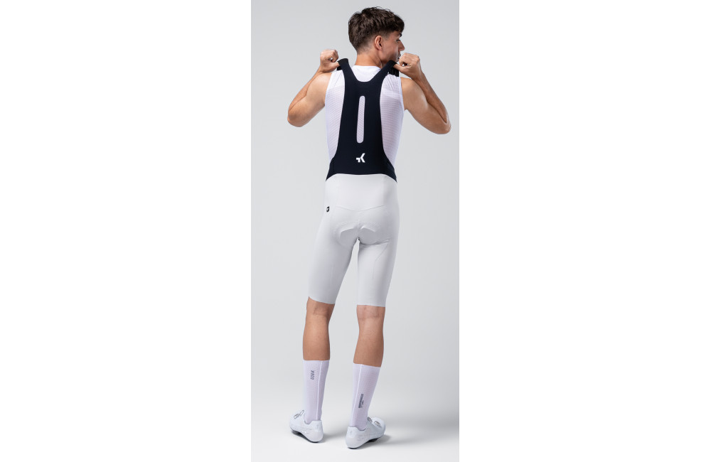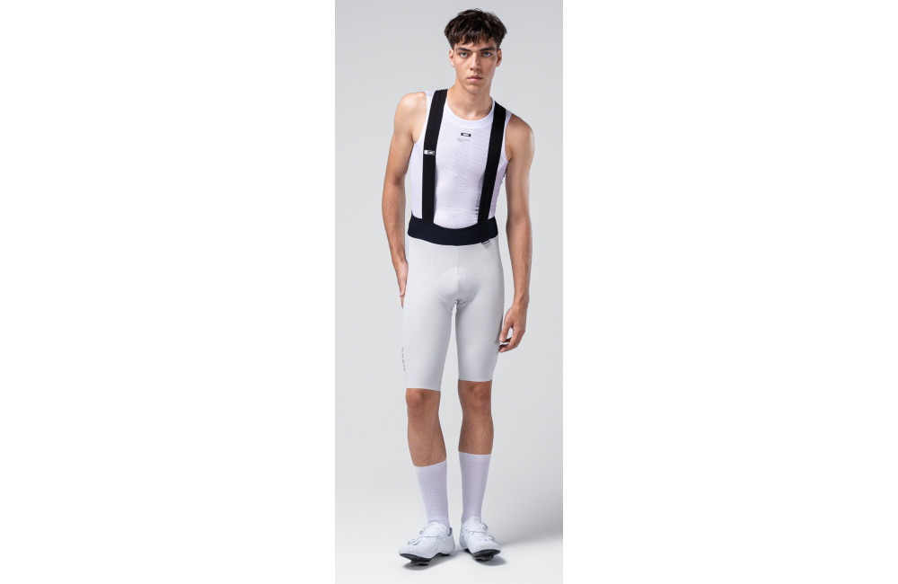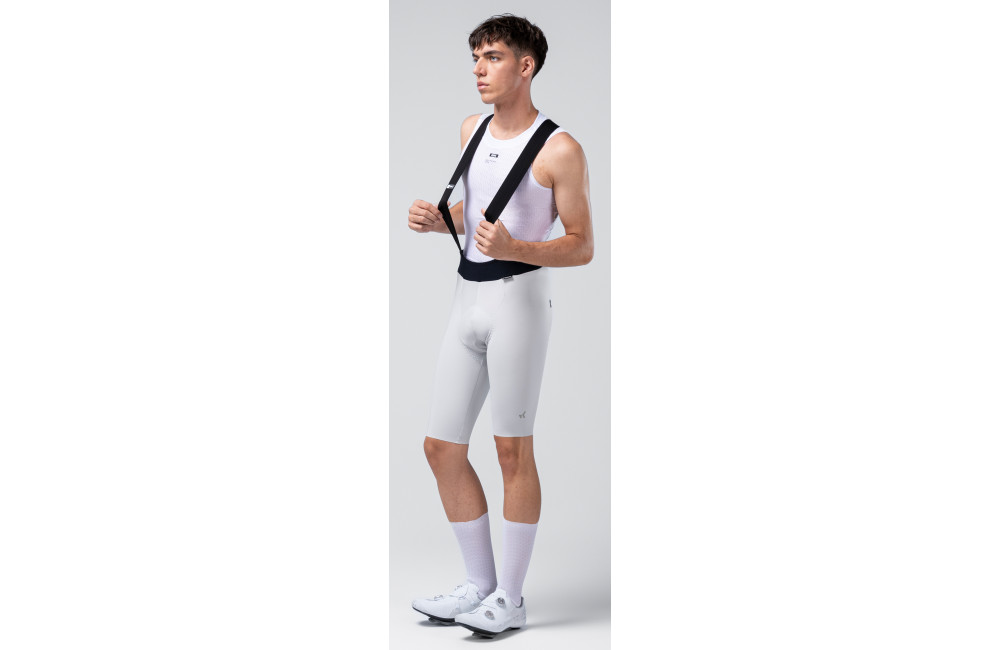 Lightweight, breathable bib shorts with stretch fabric and precise cut, featuring graphene thermoregulation for elegant comfort and performance.