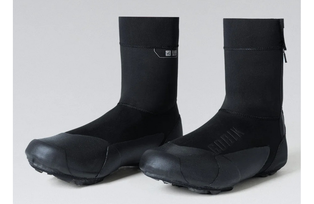 Gobik AVERT mountain bike/gravel overshoes protect against cold and rain. Thermal insulation, protective footwear, and rubber/Kevlar reinforcements for walking on technical terrain.