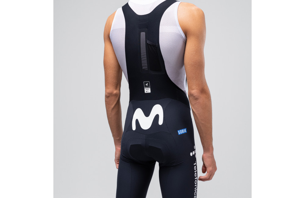 Gobik D-Labs creates the Ultralite: minimalist bib shorts, fewer seams, superior comfort, new straps and exclusive elegant design, in the colors of the MOVISTAR team.