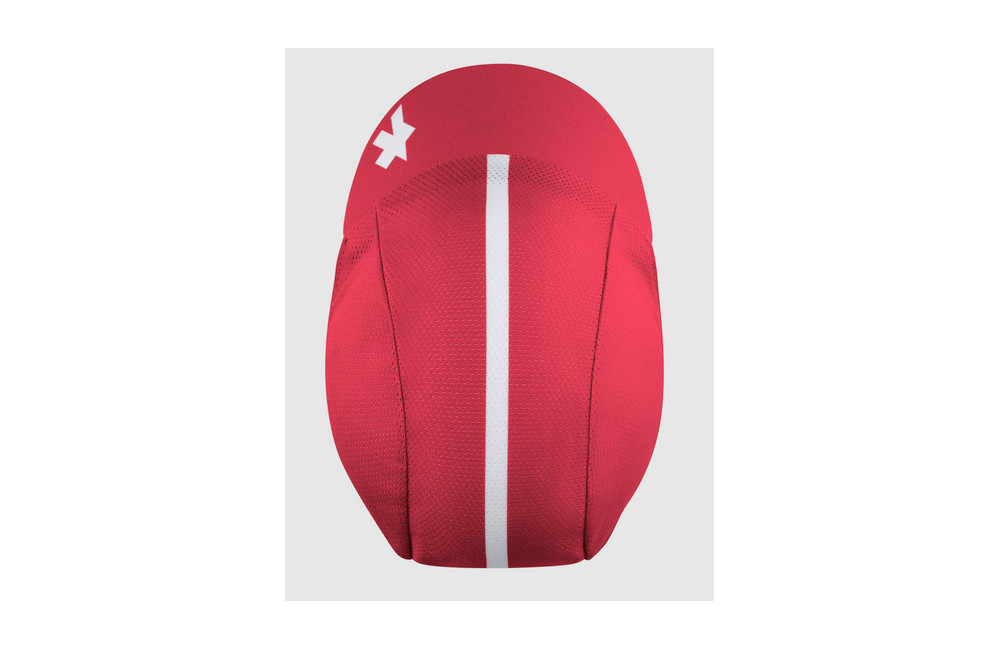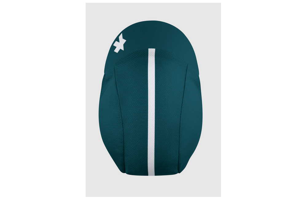Cette casquette de cyclisme ASSOS régule activement l'humidité et assure un rafraîchissement rapide grâce à ses matériaux techniques.