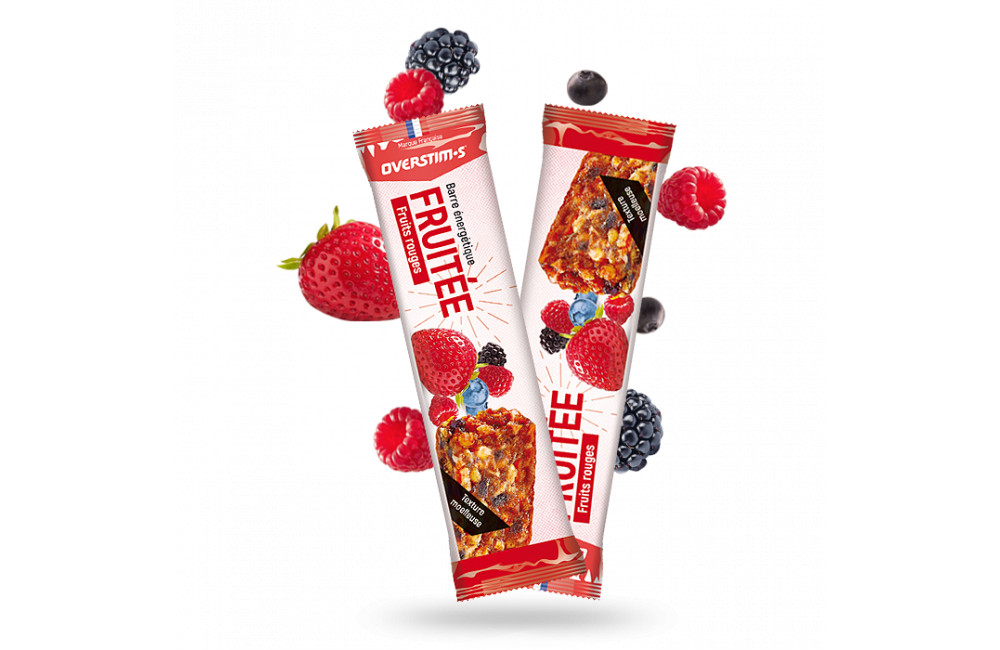 La barre fruitée OVERSTIMS, riche en fruits et vitamine C naturelle, apporte une énergie progressive en cours d'effort