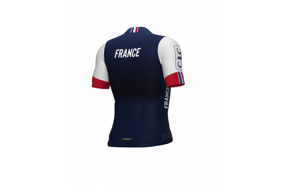 Le maillot officiel PR-S de l’Équipe de France est le modèle haut de gamme porté par les coureurs.