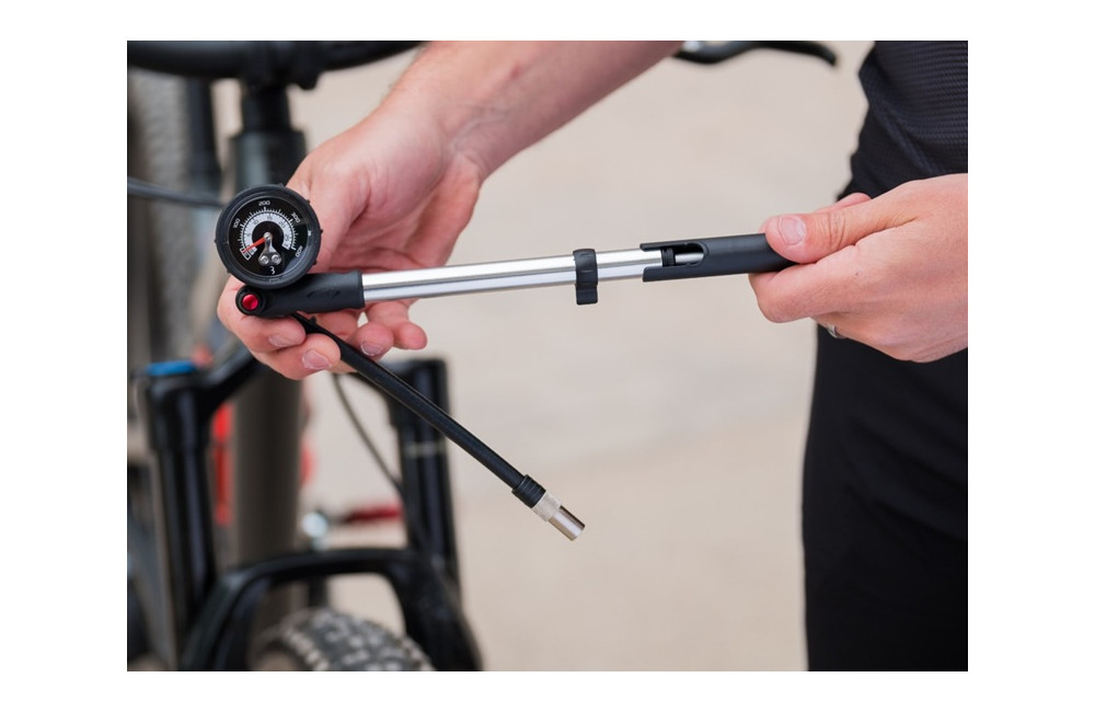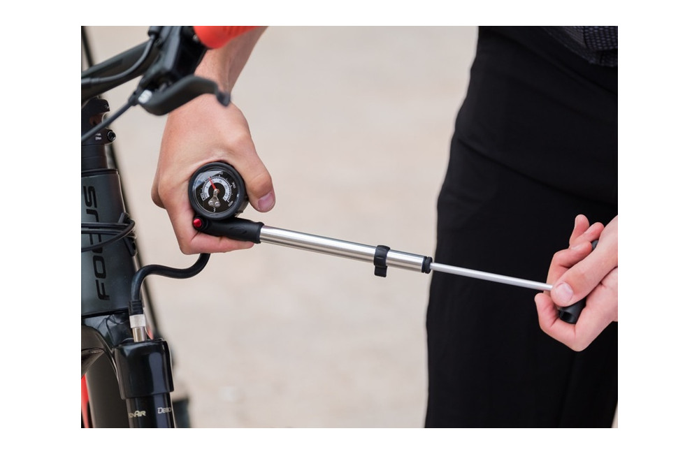 Comme pour vos pneus, il est important de gonfler régulièrement votre suspension pneumatique. L’Airshock facilite cette tâche grâce à son système de purge spécial, qui permet de relâcher facilement un peu d’air pour atteindre la pression exacte souhaitée. Son tuyau pliable sur le côté rend le rangement simple et pratique. Rapide, précis et facile à utiliser, il garantit des sorties confortables à chaque fois.