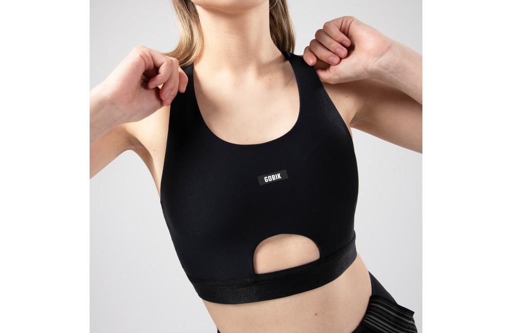 La brassière vélo pour femme GOBIK CRUX est un soutien-gorge léger et respirant, adapté au cyclisme féminin, avec design minimaliste, bonding et micro-perforations pour plus de confort et ventilation.